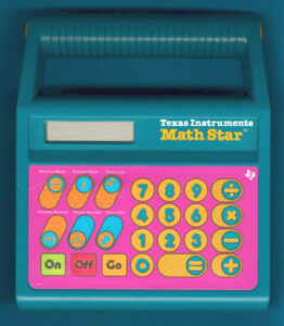 Après avoir imaginé quelques calculatrices électroniques, cette société investit aussi un champ original, celui des jeux éducatifs électroniques. Ils ne sont, bien évidemment pas les seuls, mais, là ou d’autres restent dans le champs de la culture générale et de la connaissance, Texas Instruments imagine un dispositif original: la calculatrice inversée. Au lieu de donner le résultat à un calcul, la calculatrice pose une opération ou laisse l’opérateur poser la question et c’est la personne qui doit entrer la réponse à l’opération. La calculatrice « se contente » de valider ou non le résultat.