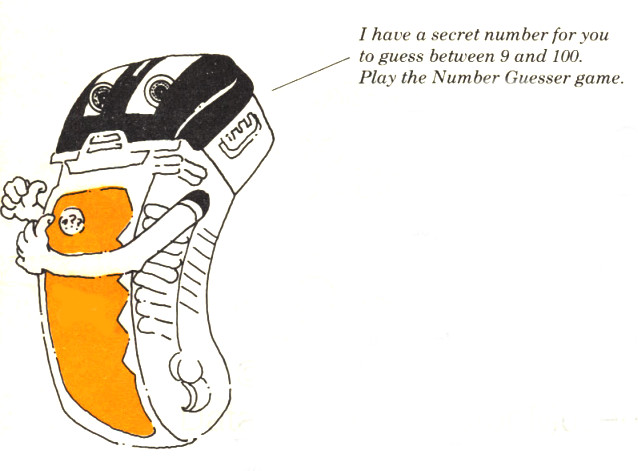 Jeu d’encadrement, Dataman choisit aléatoirement un nombre entre 9 et 100. Il faut trouver le nombre mystère en l’encadrant. La machine enregistre le nombre de coups nécessaires pour obtenir le bon résultat.